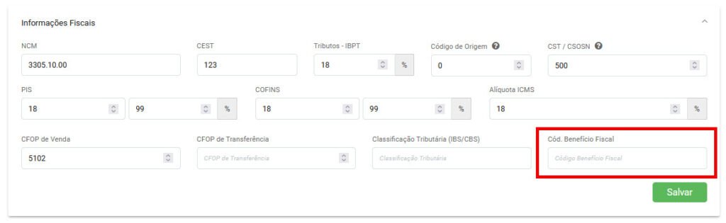 NFC-e – Código de Benefício Fiscal