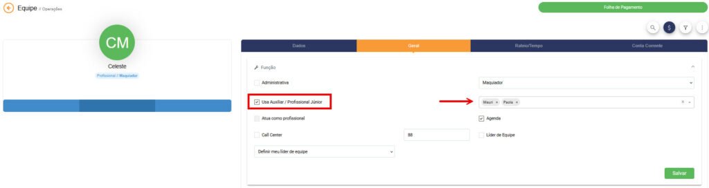 A vinculação dos auxiliares ou profissionais júnior aos profissionais possibilitará maior controle no lançamento em comanda, além de permitir que eles visualizem a agenda dos profissionais aos quais estiverem vinculados.